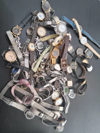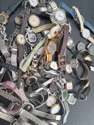Lotto misto di 50 orologi da polso, adatti sia per uomo che per donna. - Vari modelli e stili. - Diverse marche. - Ideali per collezionisti o per chi cerca pezzi di ricambio.