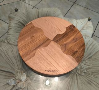 Bellissimo tagliere realizzato con un'accurata selezione di legni pregiati. - Realizzato in castagno e acero selvatico. - Design circolare con intarsi unici. - 30 cm diametro - 2.5 cm spessore