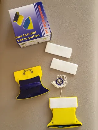 Pulitore per vetri magnetico, ideale per una pulizia efficace su entrambi i lati senza fatica. L'attrezzo magnetico per pulire i vetri ha i due lati dotati di magneti che si bloccano insieme permettendo di pulire contemporaneamente i due lati dei vetri.Garantisce una precisione ad ogni passaggio senza sforzo.Dotato di corda Con 2 panni di cotone per il ricambio. -