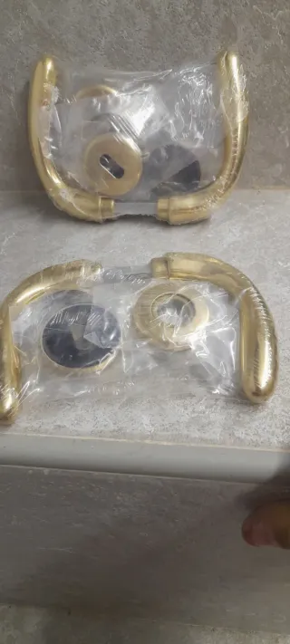 Maniglia per porta in finitura oro, con quadro incluso. - Design elegante e lucido. - Materiale metallico resistente.
