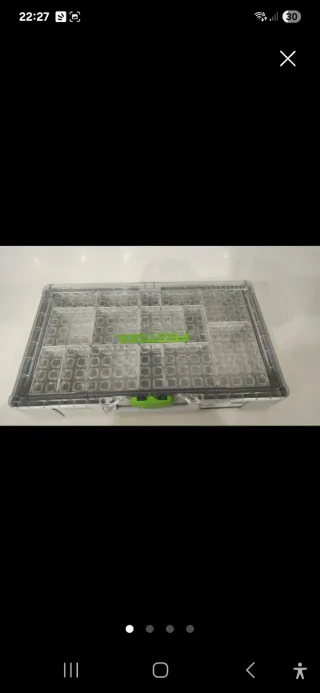 Contenitore porta minuteria Festool Systainer. - Struttura trasparente. - Maniglia verde. - Divisori interni modulabili.