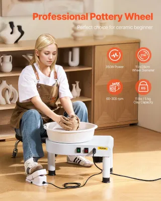 Operazione Efficace: dotata di un motore potente da 350W, è costruito con i materiali di qualità per gestire i lavori più difficili. La forza di gestire argilla fino a 5 kg con facilità, il giradischi con diametro da 28cm, che offre ampio spazio per lavorare. Potenza 350W 220V Velocità di rotazione 60-300 giri/min Senso di rotazione orario & antiorario Diametro del giradischi 28 cm Carico massimo dell'argilla 5 kg Dimensioni bacino ABS 47,5 x 33,5 x 8 cm Dimensioni del prodotto 50 x 38 x 35 cm