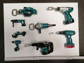 Set da collezione a tema Makita. - Cavatappi a forma di utensile. - Magneti con design di utensili. - Colore: verde e argento. -vendita singola € 15 x cavatappi € 8 magneti