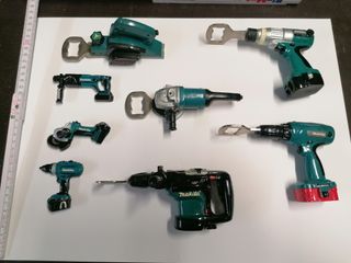 Gadget a forma di smerigliatrice Makita, utile come apribottiglie. - Design unico. - Logo Makita visibile.