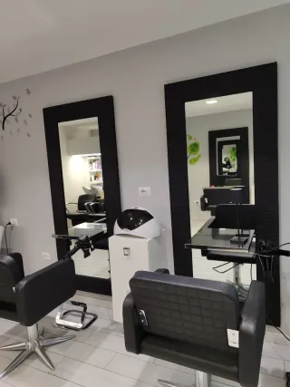 Arredamento per salone di parrucchiere.4specchi di pelle nera, 4 poltrone pelle nera,un armadio con luci,banco cassa,3posti attesa,2 asciugacapelli,2 mobiletti con cassetti x attrezzi,un climazon nuovo.2 puff attesa, separé in cristallo.tutto come nuovo - Design moderno e funzionale. - Materiali di qualità.