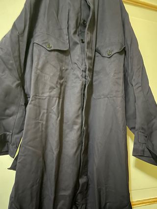 Tuta da lavoro da meccanico di colore blu scuro. - Chiusura centrale con bottoni. - Due tasche sul petto con patta e bottone. - Tasche laterali. - Polsini regolabili con bottoni.