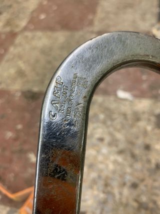 Gancio di sicurezza per lavori in quota. - Materiale metallico resistente. - Meccanismo di chiusura a scatto.