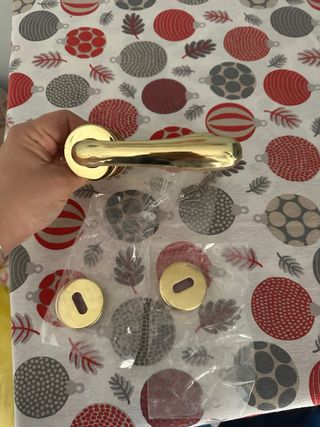 Bellissime maniglie per porte interne, colore oro. Sono nuove e mai usate. - Colore: oro - Materiale: alluminio - Include 2 maniglie e viti per il montaggio. Diametro 45 mm