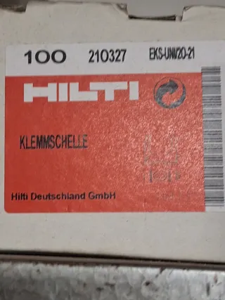 morsetto a scatto per tubi rigidi o flessibili, noto anche come clip fissatubo. Diametro: 20 mm. Materiale: Realizzato in tecnopolimero. Colore: Grigio. Utilizzo: Utilizzato per fissare tubi a parete o soffitto. Caratteristiche: Fissaggio con tassello ad espansione. - Modello: Klemmschelle - Quantità: 100 pezzi - Codice articolo: 210327 - Codice prodotto: EKS-UNI/20-21 - Produttore: Hilti Deutschland GmbH