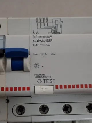 Interruttore magnetotermico differenziale BTicino. 4 poli 400 volts 3f + neutro - Modello: C50 F84A/50 - Tensione nominale: 400V - Corrente nominale: 0,5A - Marca: BTicino - Serie: Salvavita G45/63AC - 4500 KA