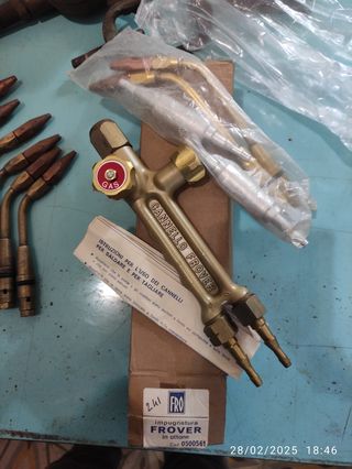 Impugnatura cannello FROVER mod. 0500561 in ottone + 2 lance saldatura e taglio, il tutto nuovo mai usate, nella confezione originale. Serie di 6 lance FRO in ottone complete, varie misure, usate ma in ottime condizioni + 2 riduttori di pressione usati FRO, vendo in blocco.