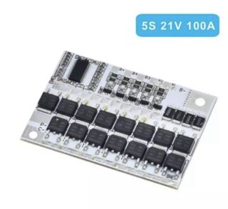 Scheda di protezione per pacchi batteria al litio. Disponibili 3 pezzi. Scheda di protezione 5S 100A BMS Balance Li-ion LiPo PCB e NTC - Configurazione 5S. - Corrente massima 100A. - Tensione nominale 21V.