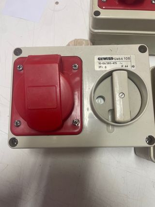 3 Prese industriali GEWISS GW66 108 con interruttore integrato. Ideale per applicazioni professionali. - Modello: GW66 108 - Tensione: 380-415V - Corrente: 16A - Grado di protezione: IP44 - Configurazione: 3P+E