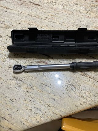 Chiave dinamometrica in metallo con impugnatura in gomma nera, completa di custodia rigida. - Corpo in metallo lucido. - Scala graduata per la regolazione della coppia. - Custodia in plastica nera con chiusura a scatto.marca kamasa tools Da 20 a 110 Nm
