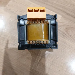 Trasformatore di marca NEW C.T.A. con potenza di 30 VA. - Primario: 400-230V. - Secondario: 0-12-24V. - Frequenza: 50-60 Hz. - Modello: TMS1K0.03. - Lotto: 97-10. - Classe di isolamento: Cl.B. - Certificazione CE.