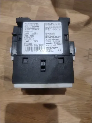 Vendesi due contattori elettrici, uno Siemens e uno Telemecanique, nuovi, materiale da esposizione. Il prezzo si intende tende per entrambi i pezzi. - Contattore Siemens modello 3RT1018-1AP01. - Contattore Telemecanique modello LC1 D09 10.