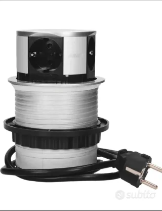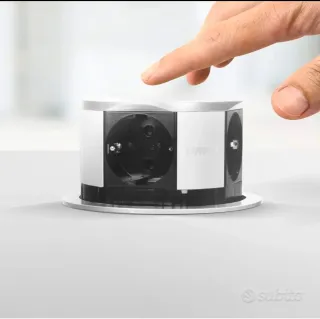 Multipresa a scomparsa, ideale per essere installata su tavoli o scrivanie. Il design è moderno e funzionale. - Finitura in alluminio. - Dotata di prese elettriche. - Cavo di alimentazione incluso.