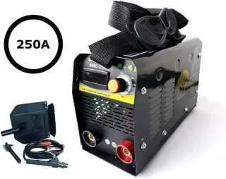 Saldatrice a elettrodo elettrica inverter saldatura 250A + accessori Saldatrice a elettrodo elettrica inverter saldatura 250A + accessori Tensione: 230v +/- 15% Frequenza della corrente: 50GHz Campo regolazione: 20-250A Diametro elettrodi: 1.6-4.0mm