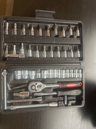 Set completo di attrezzi per lavori manuali, ideale per diverse esigenze. - Inserti per avvitare di varie misure. - Bussole a cricchetto. - Prolunga flessibile.