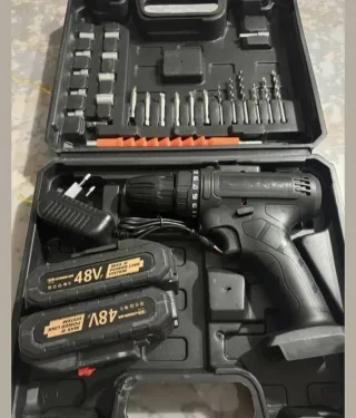 Trapano avvitatore 2 batteria 48V NUOVO + SET ACCESSORI Ideale per forare e avvitare su legno, metallo e plastica. Design compatto ed ergonomico, con regolazione di coppia e funzione reversibile. Grazie alle 2 batterie ricaricabili al litio incluse, offre lunga autonomia e praticità d’uso senza fili. 📦 Contenuto del kit: Trapano avvitatore 48VF 2 batterie ricaricabili al litio Caricatore Set punte e inserti Prolunga flessibile arancione Valigetta rigida per trasporto ✅ Potente e leggero ✅ Senza fili, pratico e maneggevole ✅ Perfetto per casa, fai-da-te e piccoli lavori professionali