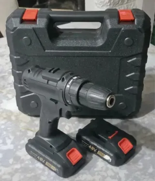 Trapano avvitatore a percussione con doppia batteria. - Potenza 48V. - Include 2 batterie. - Valigetta per trasporto.