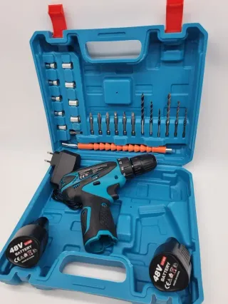 Trapano avvitatore professionale completo di accessori. - 48V di potenza - 2 batterie incluse - Set di punte e inserti - Caricabatterie - Valigetta per il trasporto