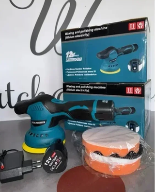 Lucidatrice e levigatrice elettrica senza fili, alimentata da batteria al litio. - Macchina per lucidare e levigare. - Batteria al litio da 12V inclusa. - Caricabatterie incluso. - Dischi di lucidatura inclusi.