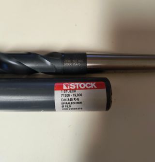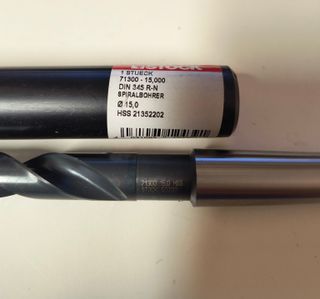 Punte elicoidale diametro 15mm, Stock, 5xD, DIN 345, HSS, Finitura superficiale: vaporizzata, Tipo: N, Direzione di taglio: destra, Profondità di lavorazione: 114 mm, nuova