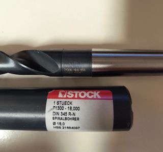 Punte elicoidale diametro 18mm, Stock, 5xD, DIN 345, HSS, Finitura superficiale: vaporizzata, Tipo: N, Direzione di taglio: destra, Profondità di lavorazione: 130 mm, nuova