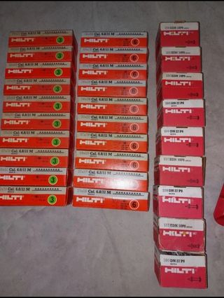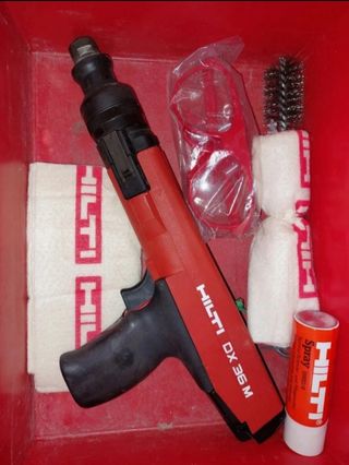 Pistola sparachiodi in condizioni perfette. Modello : DX 36 M - 29 confezioni di chiodi di diverse misure (come nella foto) - Occhiali protettivi - Spazzola di pulizia - Lubrificante spray Hilti