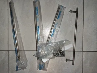 Set di 4 maniglie per mobil iin acciaio inox . Design moderno e resistente. Misure in foto. Completo di ferramenta per il montaggio. - Materiale: Acciaio inossidabile - Finitura: Spazzolata - Include viti per il montaggio