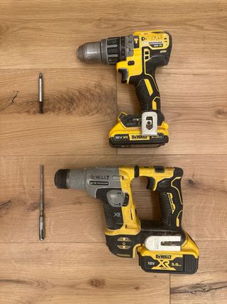 Vendo coppia Trapani/Avvitatori DEWALT usati. Entrambi gli oggetti sono completi di batteria ma privi di scatola originale e caricabatterie. Gli utensili sono usati e presentano quindi un po’ di sporcizia generata dall’utilizzo ma funzionano perfettamente. Al momento non è stata effettuata una pulizia ma volendo è possibile rimuovere gran parte della polvere accumulata sugli oggetti.