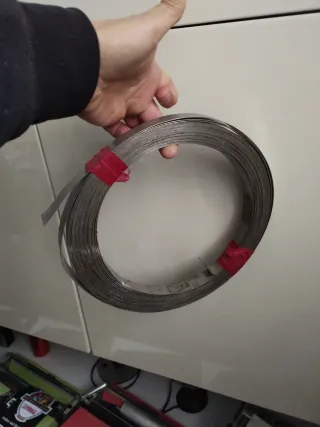 Rotolo di fascetta stringitubo in acciaio, ideale per fissaggi resistenti. Al rotolo è stato tagliato solo un pezzo di 40 cm al massimo. Larghezza 19.5 - Materiale: acciaio - Forma: rotolo