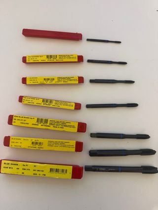 Set di maschi Dormer per filettatura metrica. Maschi a mano per fori passanti ciechi Le misure sono : 12/10/8/6/5/4/3 Se volete una sola misura contattatemi - Passo: 1.75 mm - Materiale: HSS (High-Speed Steel) - Finitura: Bright - Tolleranza: 6H - Standard: ISO 529 - Origine: Brasile