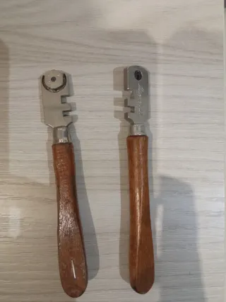 Set di due tagliapiastrelle professionali. - Manico in legno. - Testa in metallo con rotella. - Marca Silberschnitt.