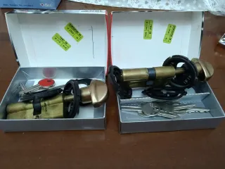Set di serrature a cilindro complete di chiavi. -serrature a cilindro. - Set di chiavi incluse per ogni serratura. - disponibilità 2 pezzi Euro 24 cadauna Misure come da foto