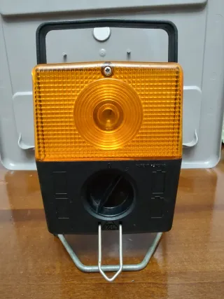 Torcia vintage marca HADAR. 2 funzioni: torcia e lampada di segnalazione Dotato di maniglia e base regolabile Alimentazione: 4 batterie non incluse Misure come da foto
