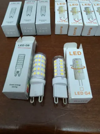 Set di lampadine LED. -Luce calda - Lampadine LED G9 - Lampadine LED G4 - Basso consumo energetico 11 pezzi G9 4 pezzi G4 Euro 1,30 cadauna