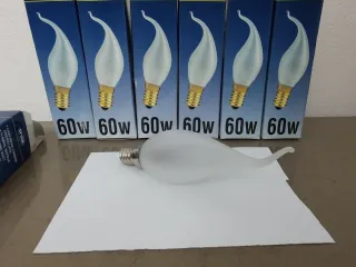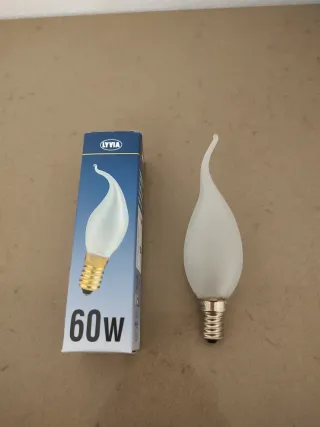 Lampadina a incandescenza a forma di fiamma detta "colpo di vento" - Marca: Lyvia - Potenza: 60W - Attacco E14 Disponibili 7 pezzi uguali Euro 4,10 cadauna
