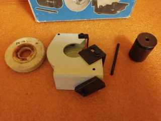 Vendo dispositivo per affilare utensili da usare sul tornio Emco unimat 3 Cod 150090 completo di scatola. L'accessorio è usato con segni del tempo e dell'uso.