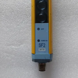 Barriera fotoelettrica di sicurezza, modello SF2 30-045-PP-X Emitter. Disponibili 4 pezzi. Lunghezza 52.2cm - Indicatore SAFE. - Indicatore POWER ON. - Corpo giallo e blu.