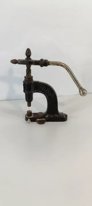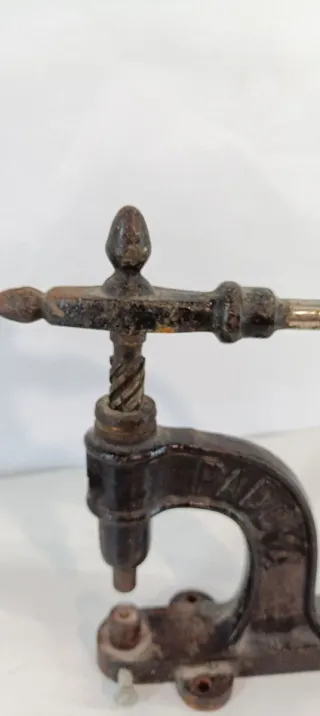Pressa manuale in ghisa, ideale per bottoni, rivetti e simili. - Materiale: ghisa. - Design robusto e compatto.