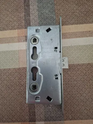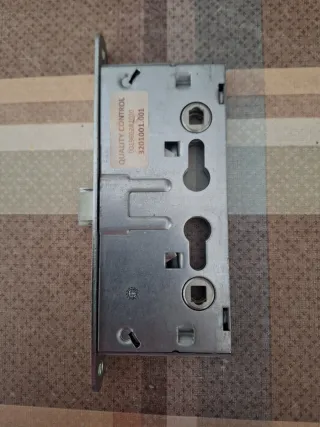 Serratura per porta, modello Rei FH. Realizzata in metallo. - Meccanismo di chiusura. - Placca frontale in metallo. - Foro per cilindro. - Foro per maniglia.