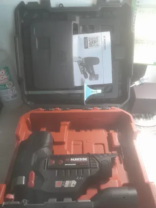 Seghetto a pendolo Parkside, modello 12V, completo di valigetta. - Valigetta per trasporto e conservazione. - Manuale di istruzioni incluso.
