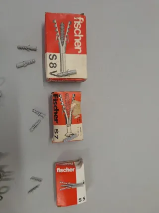 Lotto misto di tasselli Fischer. - 100sb 8. 100 sb7. 100 diametro 5 in nylon. 10 diametro 9 con gancio corto. 10diametro 9con gancio aperto 10 diametro 8 gancio chiuso in acciaio