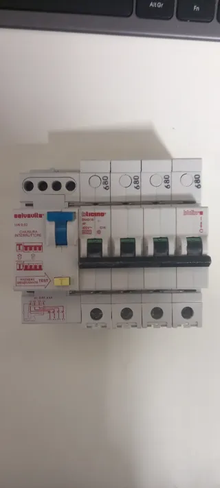 Interruttore magnetotermico di marca Bticino, modello Salvavita. - 4 moduli. - 400V~. - C16.