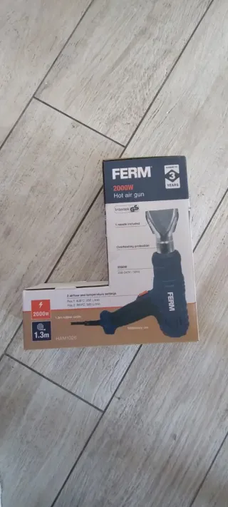 Pistola ad aria calda FERM da 2000W, ideale per vari lavori. - Potenza: 2000W - 2 impostazioni di flusso d'aria e temperatura - Protezione dal surriscaldamento - Cavo in gomma da 1.3m - 1 ugello incluso