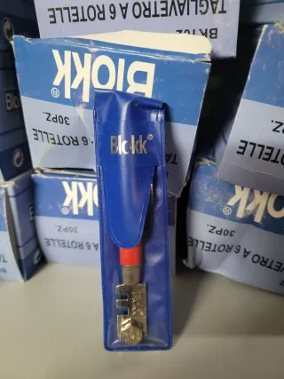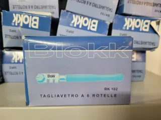 Tagliavetro professionale a 6 rotelle marca Blokk per vetro/piastrelle. Prodotto nuovo. Il prezzo si intende per ogni scatola da 30 pezzi, ogni tagliavetro è provvisto di custodia singola.
