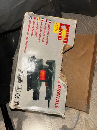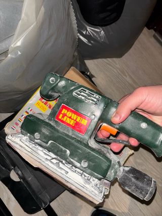 Levigatrice Power Line R-250, ideale per lavori di levigatura. - Colore verde. - Design ergonomico. - Marca: Power Line.