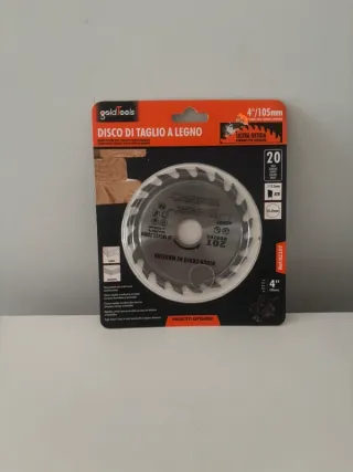 Disco da taglio GoldTools per legno, con 20 denti e 105mm di diametro. - Modello: 4/105mm - Denti: 20T - Marca: GoldTools - Ideale per tagli precisi su legno.